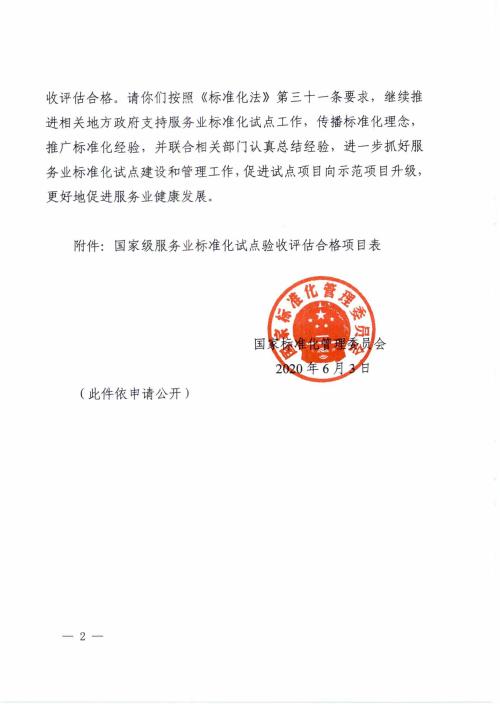 近日,国家标准化管理委员会下发《关于山西太谷夕阳红疗养院养老服务标准化试点等90个国家级服务业标准化试点验收评估合格的通知》(国标委发〔2020〕28号),泰山索道运营中心2018年8月参与的“山东泰安旅游服务综合标准化试点”项目(编号:NSS37-049-2020)和2019年11月承担的“山东泰安泰山索道运营服务标准化试点”项目(编号:NSS37-052-2020)验收评估合格。
