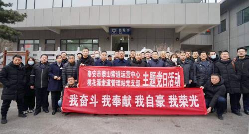 2022年1月12日,桃花源索道管理站组织开展主题党日活动,重温国家主席习近平2022年新年贺词,传达学习中心党组书记贾代常在部门述职大会上的总结讲话精神,共同签署“我奋斗 我奉献 我自豪 我荣光”倡议书。